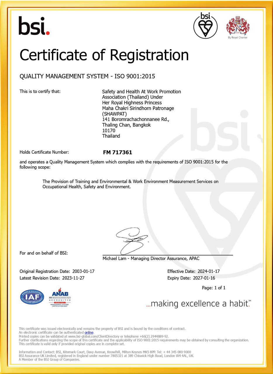 สมาคมส่งเสริมความปลอดภัยและอนามัยในการทำงาน (ประเทศไทย) ในพระราชูปถัมภ์ฯ
