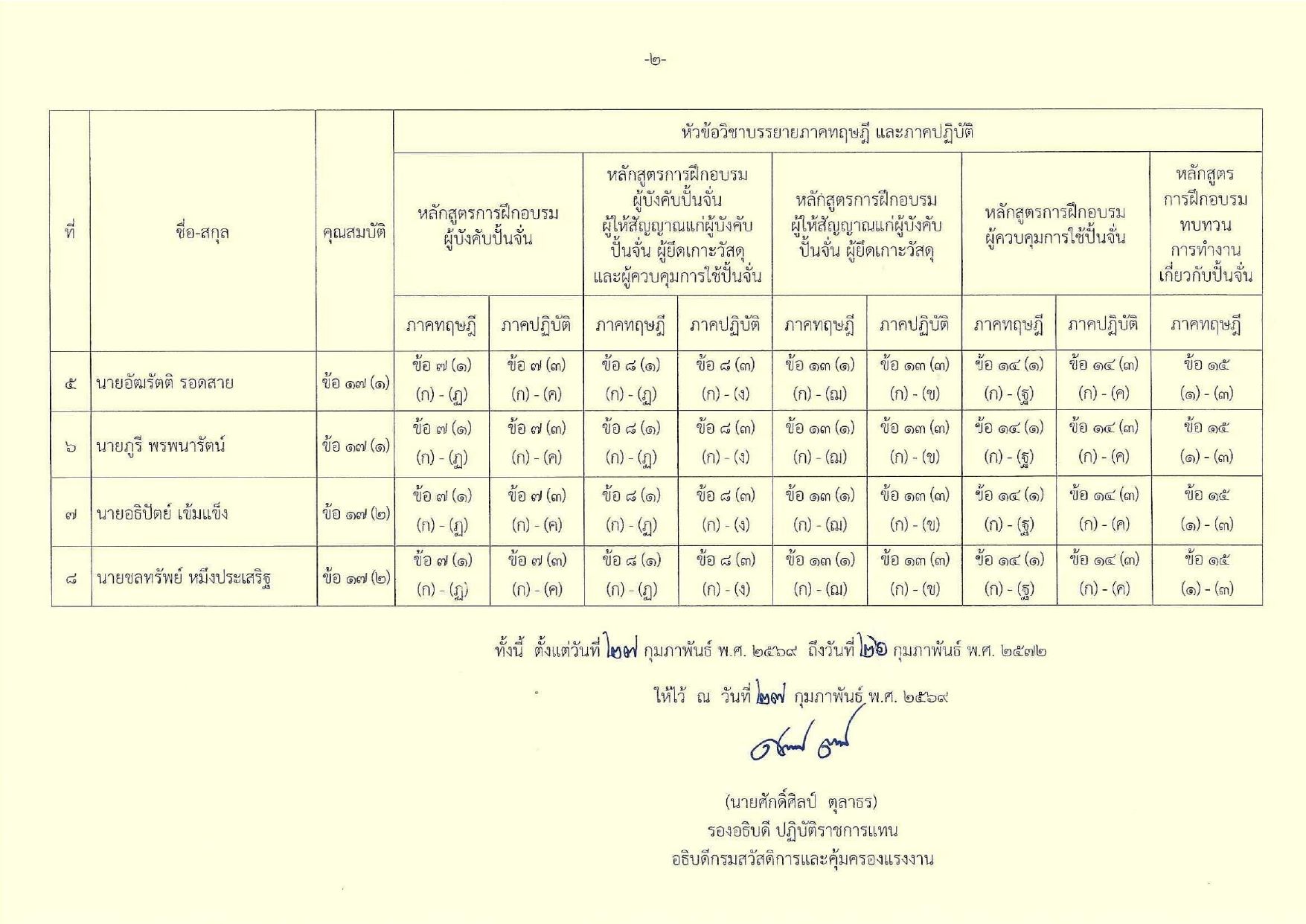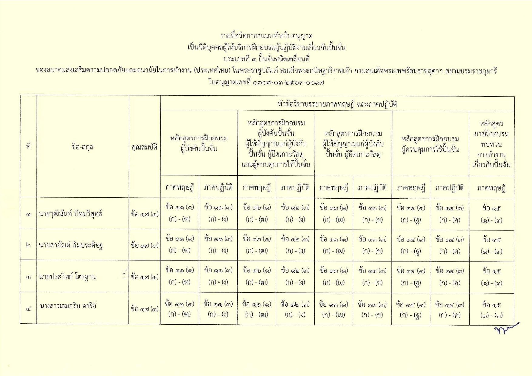 หลักสูตร : การฝึกอบรม ผู้บังคับปั้นจั่น ผู้ให้สัญญาณแก่ผู้บังคับปั้นจั่น ผู้ยึดเกาะวัสดุและผู้ควบคุมการใช้ปั้นจั่น สำหรับปั้นจั่นชนิดเคลื่อนที่