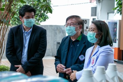 •  บริษัท มหาจักร อินเตอร์เนชั่นแนล จำกัด บริจาคเจลแอลกอฮอล์ล้างมือ ชุด PLASTICGOWN FE และหน้ากากกันของเหลว (Face shield)